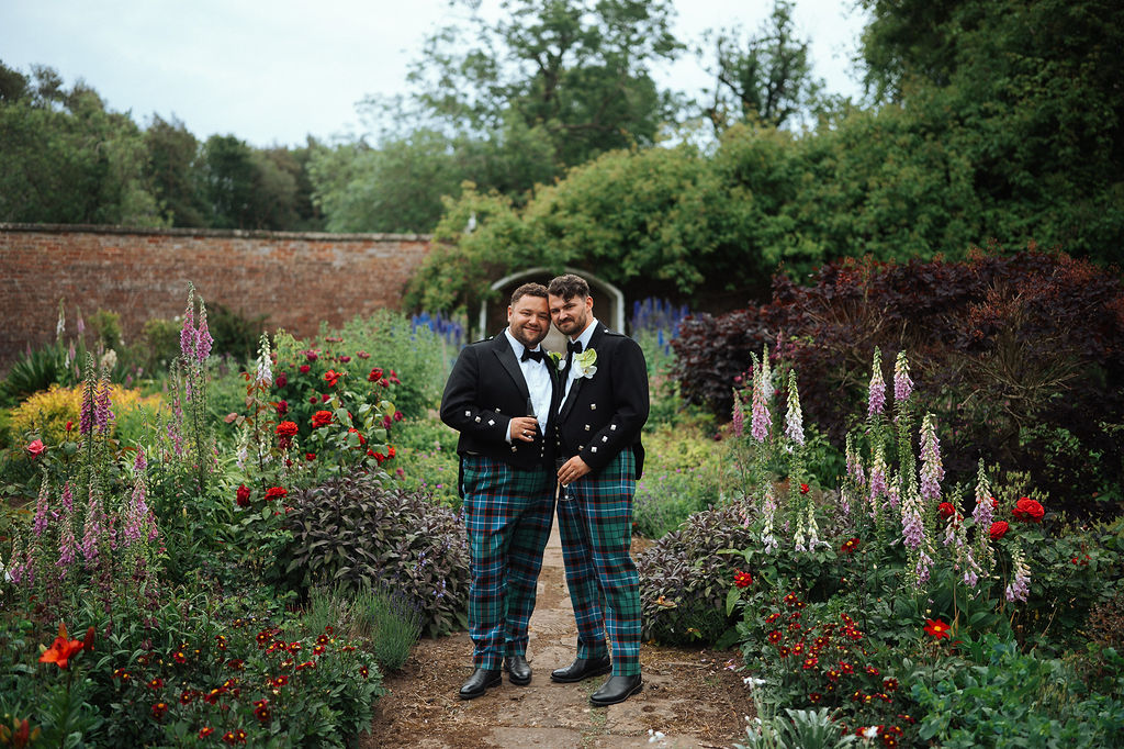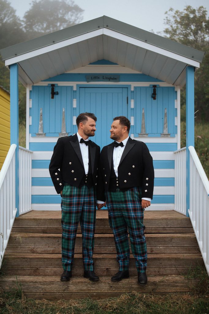 They decided to bring their September date forward to June in order to get the best chance of being able to have an outdoor ceremony and reception. The day started off pretty hazy, with the boys heading down to Coldingham Bay for some pre-ceremony couples photos.