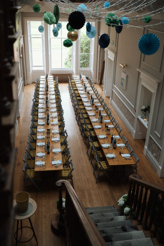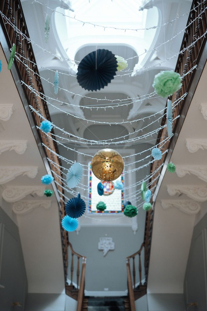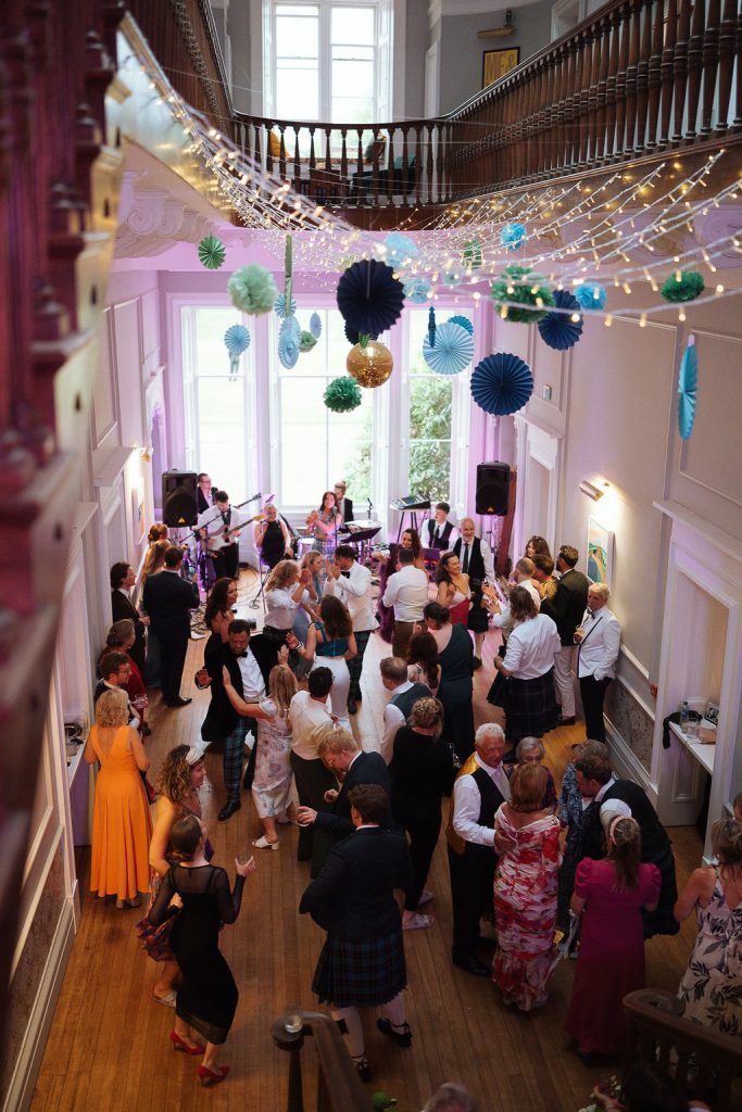 Occasions of Eyemouth worked their magic on the beautiful flowers, which tied in with the blue and green theme of the decorations hanging from the Grand Hall balcony and the wedding party’s gorgeous mismatched dresses.